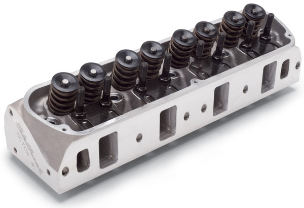 The Edelbrock 77189 Victor Jr. Small Block Ford cylinder head offers high horsepower potential on competition level engines and are compatible with OE valve train and pistons for bolt-on convenience. VICTOR JR. 20deg - 210cc FEATURES: 500+ horsepower potential out-of-the-box using stock valve train geometry High-flowing 210cc intake ports and .130" raised 75cc exhaust ports Available with 60cc or 70cc combustion chambers 70cc combustion chambers are ideal for turbocharged and supercharged applications CNC gasket-matched port entries/exits with blended valve bowls Spark plug holes and valves are in the stock location Valve cover rail raised .150" A relief in the head allows most roller lifters to be changed without removing the head