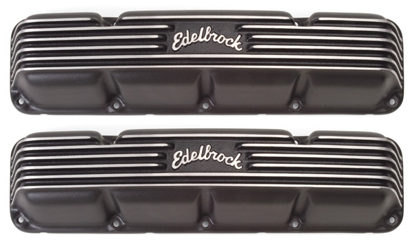 Edelbrock part #41993 Classic Series Valve Covers are designed for AMC/Jeep 290-401 V8 1967-91 applications and have a Black finish. Edelbrock first made these aluminum valve covers in the late '50s and they're still a classic. Made of heavy-gauge sand-cast aluminum, Overall height is measured from base to top at the highest point. Edelbrock classic valve covers can be machined to accept breathers if desired.