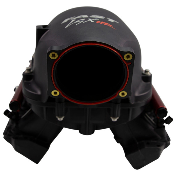 FAST has developed the industry’s first polymer tunnel ram-style intake manifold, ideal for generating maximum power in boosted and naturally aspirated engines. Available for rectangular port LS3 and raised rectangular port LS7 engines, the FAST LSXHR FAST-RAM Intake Manifold features removable stacks of various lengths, so racers can experiment with finding which combination makes the most power in their application. Its polymer construction is not only lightweight and high strength, but also virtually eliminates power-robbing heat soak that occurs with commonly available aluminum intake manifolds. Testing has shown an average 30-horsepower gain between 5,000 and 7,500 RPM over competitor tunnel ram intake manifolds. The FAST LSXHR FAST-RAM Intake Manifold is designed specifically with boosted applications in mind and is rated for up to 45psi of continuous pressure. Compound fuel injector angle aims the spray pattern for ideal atomization, resulting in maximum power production and superior drivability. A reversible top allows for forward- or firewall-facing throttle body installations. The intake manifold also features two nitrous nozzle bosses per runner for clean and easy direct port system installations. Its 103mm throttle body opening can be port matched to 105mm.