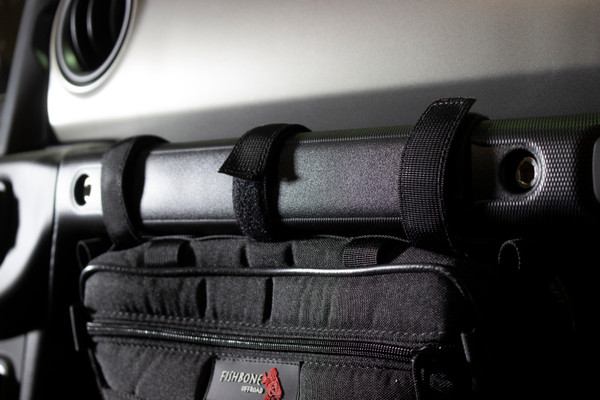 Enhance organization in your Jeep with Fishbone Offroad's Universal Utility Bag. Fits dash grab handles, fully adjustable, and perfect for recovery gear.