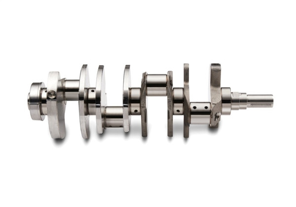 Finish machined forged steel crankshaft as used in the production 2012-2013 Mustang Boss 302 engine. 92.7 mm stroke. Balance is compatible with the BOSS 302 connecting rod and piston assembly. Requires balancing if used with another rod and piston assembly.