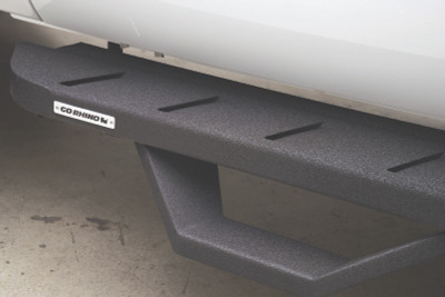 The legendary RB Series of cab length running boards from Go Rhino will make your truck, Jeep or SUV stand apart from the crowd. With an aggressive, yet stylish appearance, these bolt-on side steps take their visual inspiration from the Ford Raptor but are made for more than just looks. The RB10 running boards features a generous step area with Raptor-style louvers for maximum traction. The corrosion-resistant 16-gauge zinc coated steel steps are mounted high and tight, giving them plenty of clearance for off-road adventures, and are strong enough to support hundreds of pounds of weight. The welded, boxed end design is offered in textured black powder coat or rugged, bedliner coating. Hardware and brackets are included and installation on most vehicles will not require drilling. RB10 Running Board Kits come with a Limited Lifetime warranty on materials and construction and a 5 year warranty on the Textured Black Finish.