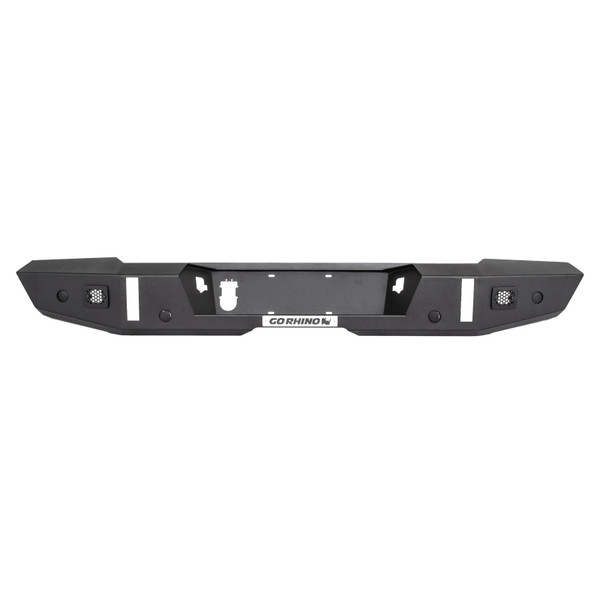 Part of Go Rhino's famous Jeep Bumper family of products. Go Rhino’s Trailline® Full Width Rear Bumper for Jeeps complements the Trailline front bumper with the same care for fit, function and style. The shell is CNC laser cut and formed 3/16” thick steel with fully welded, hand finished seams and has provisions for the installation of two additional compatible flush-mount lights. Patented Rhino Horn shackle mounts can fit 7/8” D-rings. Installation is easy with no drilling or cutting required. The Trailline rear bumper is compatible with the factory hitch. The Trailline rear bumper is compatible with the factory hitch. Trailline Bumpers come with a Limited Lifetime warranty on materials and construction and a 5 year warranty on the Textured Black Finish.