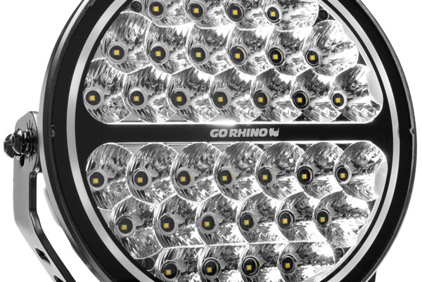 Go Rhino Xplor Blackout Series Round LED Sgl Driving Kit w/DRL (Surface/Thread Stud Mnt) 9in. - Blk - 751700911DRS