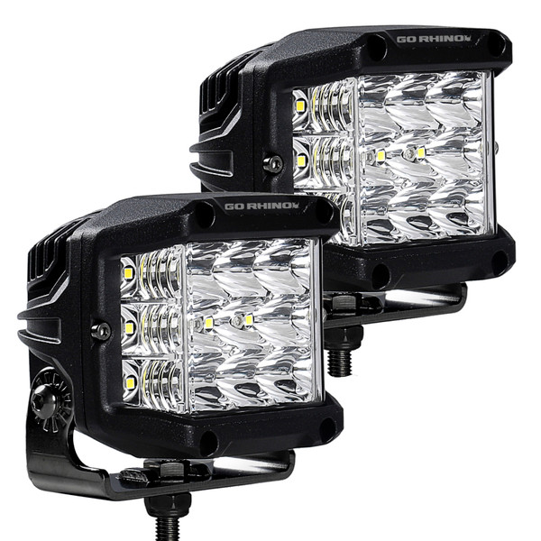 Go Rhino Xplor Bright Series Sideline Cube LED Spot Light Kit (Surface Mount) 4x3 - Blk (Pair) - 750300323SCS