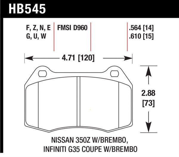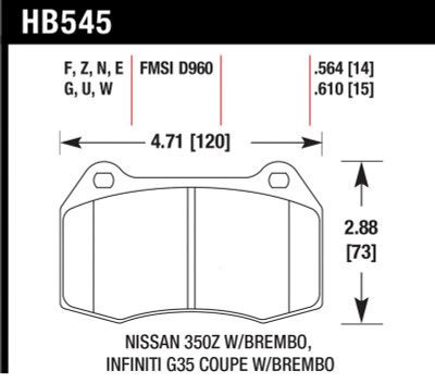 Hawk 03-07 G35/350z w/ Brembo HP+ Street Front Brake Pads - HB545N.564