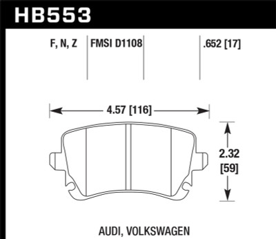 High Performance Street disc brake pads are legendary for increasing stopping power on street-legal vehicles. Increasing the performance of your vehicles braking system is easy when you choose Hawk Performances HPS braking compound. The High Performance Street compound offers a higher coefficient of friction over stock brake pads and can provide you 20 to 40 percent more stopping power and higher resistance to brake fade than most standard replacement pads. Less fade means you will have better pedal feel and more consistent performance in a durable brake pad that generates less brake dust.