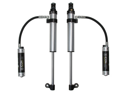 ICON Vehicle Specific (V.S.) 2.5 Aluminum Series shocks are designed and built to give your vehicle outstanding performance off-road and a smooth ride on the street. These shocks are configured specifically for each application in both length and damping tune. Like all ICON'S Shock Absorbers, V.S. 2.5 Aluminum Series shocks are 100% rebuildable and 100% revalveable. For piggyback and specific remote reservoir applications ICON'S unique use of a 6061 billet aluminum manifold a few inches below the top cap of the shock creates an internal Bump Zone that when used creates an additional 20% of damping force. This additional force helps prevent harsh bottom outs and controls the suspension when compressing at high velocity. The ICON CDC Valve is an externally adjustable valve that restricts oil flow into the reservoir which creates 10 levels of compression damping force ranges. If you are looking for a more user defined tune, consider looking into the Omega Series bypass shocks.