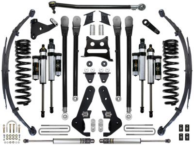 The Stage 4 system sees the inclusion of the ICON Vehicle Dynamics Ford Super Duty 4-Link kit, which further improves performance by eliminating suspension bind commonly experienced with factory radius arms during articulation. This “freeing up” of the front end and the ability of the 4-Link Kit to maintain positive caster through the range of travel equates to an unparalleled ride quality in all conditions. With the endless hours ICON has spent testing and tuning our suspension components and shocks as a complete package, you can rest assured knowing that you have the best suspension solution on the market.