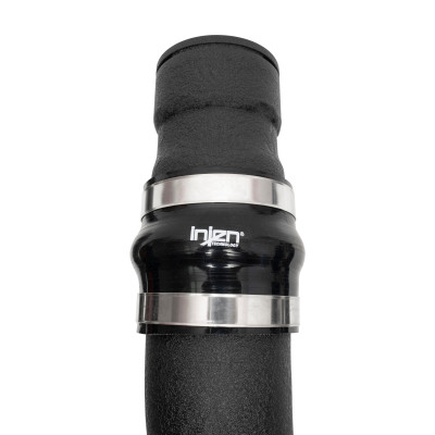 This cold side charge pipe is an upgrade over the factory unit and is manufactured from oversized mandrel-bent 6061 aluminum and every bend and TIG weld is completed by hand at the Injen Technology headquarters in Pomona, California. Having an internal diameter of 3.25in, this charge pipe is able to reduce restriction and quickly transfer cool air from the intercooler directly into the engine. The cold side pipe also aides in balancing airflow from the intercooler to improve performance and also helps lower engine damaging exhaust gas temperatures (EGTs).