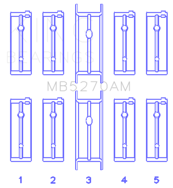 King Engine Bearings Chrysler 148/148 Turbo DOHC 16V/Jeep 148 DOHC 16V Main Bearing Set - Size STD - MB5270AM