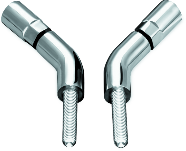 Extend stock mirrors outward about 3 in. and only slightly upward with these uniquely angled, chrome-plated mirror stem extenders.