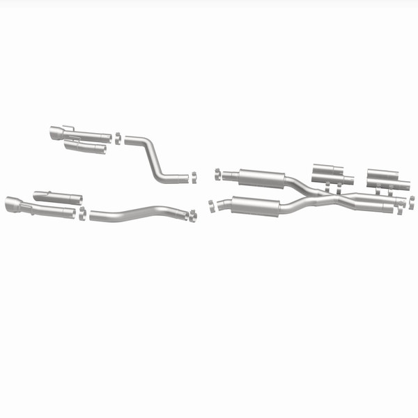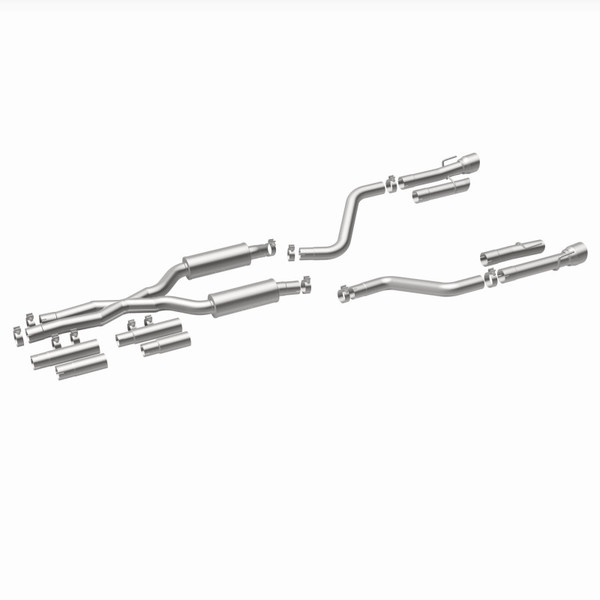 The MagnaFlow 2015-2023 Dodge Charger Competition Series Cat-Back Performance Exhaust System 19371 brings an aggressive, attention-grabbing edge to the deep resonant exhaust note we're so well known for. This exhaust kit is designed to enhance your 5.7L, 6.2L, 6.4L 2015-2023 Dodge Charger with dyno-proven performance made possible thanks to fast-flowing mandrel bent 3in. main piping and 2 Straight-Through mufflers ending in a Dual Split Rear exit with 4.5in. Polished Welded-On Double Wall Angle Cut Folded Edge tips featuring a sporty finish. The exhaust system's cat-back layout replaces your ride's exhaust system from near the catalytic converter on back. Exhaust system 19371 is engineered to make your vehicle's engine produce Aggressive exterior and Moderate interior sound levels, befitting its competition-oriented design. 19371's direct-fit design makes installation a breeze thanks to the use of advanced 3D scanning techniques. This performance exhaust system is made of 100% durable and corrosion-resistant stainless steel and produced using CNC precision robotic manufacturing, all backed by MagnaFlow's limited lifetime warranty. Please check to ensure compliance with local noise regulations.
