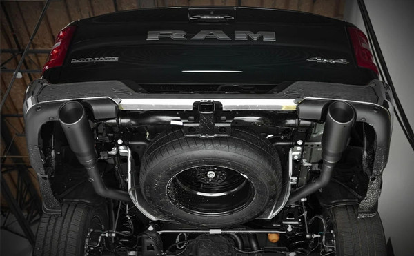 The MagnaFlow 2025 RAM 1500 I6-3.0L SPEQ Series Cat-Back Performance Exhaust System 19685 brings out the personality of your Truck with our signature resonant, powerful exhaust tone and dyno-proven performance. #19685 2.5” diameter mandrel bent main piping passes through a No Drone Technology (NDT) chamber and an all-new specifically tuned performance round muffler before exiting in a dual split rear exit with 5” black coated tips. This full-size truck exhaust kit is the perfect equalizer between sound and performance. Upgrade your truck to the next level with an exhaust that has the pipes to put other trucks to shame. With this system your truck will be producing moderate exterior and mild interior sound levels while leaving other trucks feeling envious at every stoplight. Exhaust kit 19685 features a cat-back exhaust layout that replaces your trucks stock exhaust components from near the catalytic converter on back. Extensive 3D scanning during development has resulted in a direct-fit design that you can easily install yourself. 19685 is produced using CNC precision robotic manufacturing techniques and is backed by MagnaFlow's 1-year limited finish warranty and limited lifetime construction warranty.