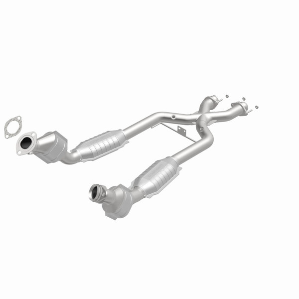 MagnaFlow HM Grade Federal/EPA Compliant Direct-Fit Catalytic Converter 23163 helps keep the check engine light off. DIY installation is easy with the proper tools (no cutting or welding required). With features including mandrel-bent tubing to eliminate flow restrictions and stainless steel construction to resist corrosion, you can have confidence in the quality of this catalytic converter. Using state-of-the-art 3D scanning systems in the design process, the MagnaFlow metrology department ensures this new part to fit and function like the original equipment. This direct-fit catalytic converter is designed specifically for the 1996-1998 Ford Mustang and interchanges with OE part F6ZZ-5F250-ML. The included gaskets & hardware reduce the possibility of a leaking seal while avoiding the need to reuse corroded factory parts for installation. This replacement part is designed to meet or exceed Federal emissions requirements set forth by the EPA, complying with legal standards for OBDII Federally registered vehicles with Federal/EPA Emission systems.