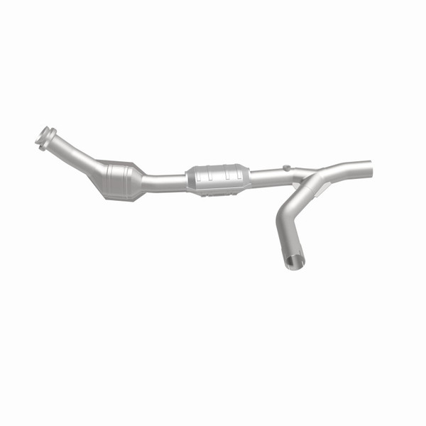 MagnaFlow HM Grade Federal/EPA Compliant Direct-Fit Catalytic Converter 93322 helps keep the check engine light off. DIY installation is easy with the proper tools (no cutting or welding required). With features including mandrel-bent tubing to eliminate flow restrictions and stainless steel construction to resist corrosion, you can have confidence in the quality of this catalytic converter. Using state-of-the-art 3D scanning systems in the design process, the MagnaFlow metrology department ensures this new part to fit and function like the original equipment. Designed to fit the 1997-1999 Ford E-150 Econoline, 1997-1999 Ford E-250 Econoline, and more, this direct-fit catalytic converter also interchanges with OE parts F8UZ-5E212-CA and XC2Z-5E212-AC, among others. This replacement part is designed to meet or exceed Federal emissions requirements set forth by the EPA, complying with legal standards for OBDII Federally registered vehicles with Federal/EPA Emission systems.
