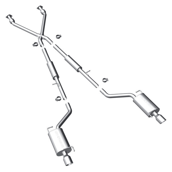 The MagnaFlow Street Series Cat-Back Performance Exhaust System 16862 brings out the personality of your 3.5L, 3.7L 2007-2013 INFINITI with our signature resonant, powerful engine tone and dyno-proven performance. Thanks to its fast-flowing, mandrel bent 2.25in. main piping and 4 Straight-Through mufflers ending in a Dual Split Rear exit with 4in. Polished Welded-On Double Wall Angle Cut Folded Edge tips, this INFINITI exhaust kit has the performance chops to match its sporty sound and appearance. Upgrade your ride to the next level with an exhaust that has the pipes to put other INFINITI's to shame. With this system your vehicle will be producing Moderate exterior and Mild interior sound levels while leaving other cars and trucks feeling envious at every stoplight. Exhaust kit 16862 features a cat-back layout that replaces your ride's stock exhaust components from near the catalytic converter on back. Extensive 3D scanning during development has resulted in a direct-fit design that you can easily install yourself. 16862 is produced using CNC precision robotic manufacturing techniques and is backed by MagnaFlow's 1-year limited finish warranty and limited lifetime construction warranty.