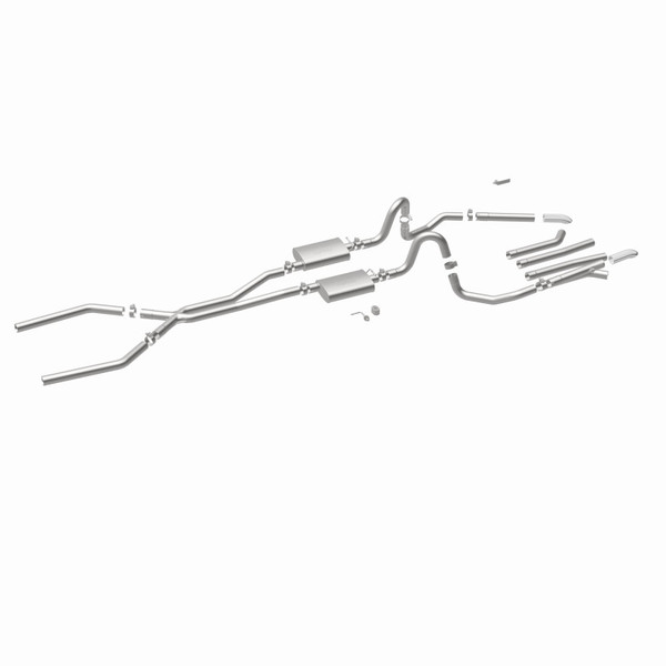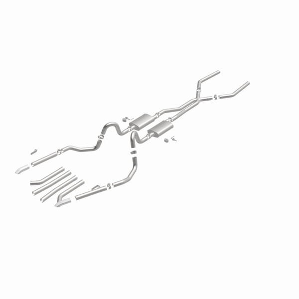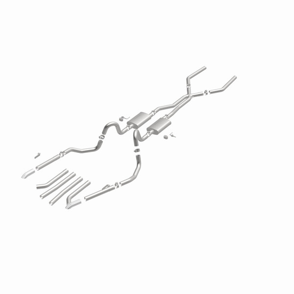 The MagnaFlow Street Series Crossmember-Back Performance Exhaust System 15893 brings enhanced engine sound and dyno-proven performance to your muscle car with a healthy helping of our deep, resonant signature exhaust note at Moderate exterior and Mild interior sound levels. Thanks to its durable, corrosion resistant stainless steel design, this exhaust system will handle whatever tarmac you decide to leave your mark on. This performance exhaust kit features a crossmember-back layout designed to replace your exhaust system from the crossmember on back. With its fast-flowing, mandrel bent 2.5in. main piping and 2 Straight-Through mufflers ending in a Multiple Exit Options exit with 2.75in. Polished Weld-On Single Wall Turndown Cut Edge tips, your muscle car will be sounding as awesome as it looks. Extensive 3D scanning during development has resulted in a direct-fit design that you can easily install yourself. 15893 is produced using CNC precision robotic manufacturing techniques and is backed by MagnaFlow's limited lifetime construction warranty.