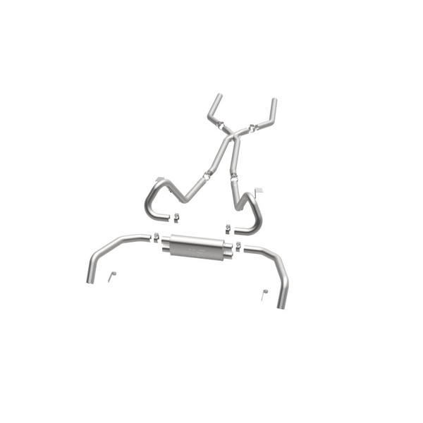 The MagnaFlow Street Series Crossmember-Back Performance Exhaust System 15895 brings enhanced engine sound and dyno-proven performance to your muscle car with a healthy helping of our deep, resonant signature exhaust note at Moderate exterior and Mild interior sound levels. Thanks to its durable, corrosion resistant stainless steel design, this exhaust system will handle whatever tarmac you decide to leave your mark on. This performance exhaust kit features a crossmember-back layout designed to replace your exhaust system from the crossmember on back. With its fast-flowing, mandrel bent 2.5in. main piping and 1 Straight-Through mufflers ending in a Dual Split Rear exit that you can enhance with tips of your choosing, your muscle car will be sounding as awesome as it looks. Extensive 3D scanning during development has resulted in a direct-fit design that you can easily install yourself. 15895 is produced using CNC precision robotic manufacturing techniques and is backed by MagnaFlow's limited lifetime construction warranty.