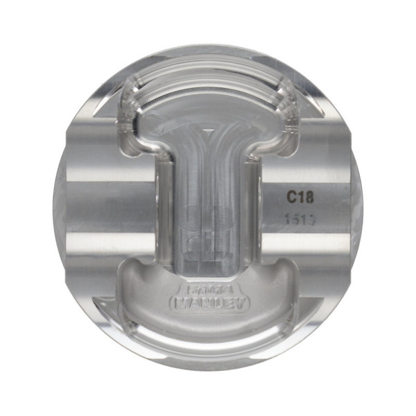 2618 Alloy Forgings: We use domestic 2618 alloy forgings, ensuring superior strength and performance.Chrome Moly Wrist Pins: Premium Chrome Moly wrist pins come standard with our Standard Series Pistons. For select SKUs, we offer wrist pin upgrades to 9310 and Turbo Tuff/DLC alloys, providing additional durability.Exacting Ring Lands and Grooves: We adhere to strict standards for piston ring lands and grooves, resulting in enhanced ring seal and more power.Cam and Barrel Profiles: Our pistons boast cam and barrel (skirt) profiles that generate substantial power while being gentle on cylinder walls.Unique Fixturing: Manley's unique fixturing allows for skirt turning and ring groove machining in a single operation, ensuring ultimate ring groove to skirt squareness.
