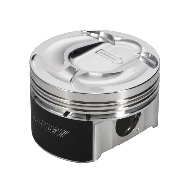 2618 Alloy Forgings: We use domestic 2618 alloy forgings, ensuring superior strength and performance.Chrome Moly Wrist Pins: Premium Chrome Moly wrist pins come standard with our Standard Series Pistons. For select SKUs, we offer wrist pin upgrades to 9310 and Turbo Tuff/DLC alloys, providing additional durability.Exacting Ring Lands and Grooves: We adhere to strict standards for piston ring lands and grooves, resulting in enhanced ring seal and more power.Cam and Barrel Profiles: Our pistons boast cam and barrel (skirt) profiles that generate substantial power while being gentle on cylinder walls.Unique Fixturing: Manley's unique fixturing allows for skirt turning and ring groove machining in a single operation, ensuring ultimate ring groove to skirt squareness.