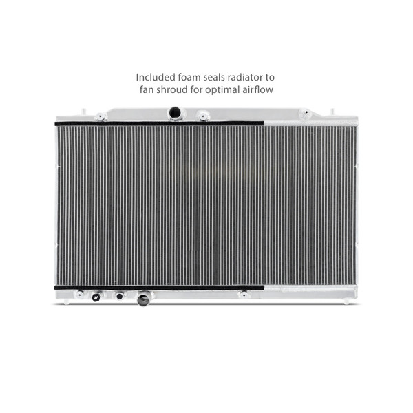 Upgrade the cooling system of your 2023+ Honda Civic Type-R with the Mishimoto Performance Radiator, engineered to utilize every millimeter possible for maximum efficiency and durability with a 17% heat rejection lowering temps on average between five to ten degrees. The all-aluminum construction features precision TIG-welded end tanks and a robust 40mm thick strutted tube core that’s designed to resist chassis flex during intense driving. With a 49% increase in core volume, a 31% larger external fin area, and a 31% boost in internal tube area, this radiator ensures efficient heat transfer and dissipation to keep your engine cool in the most demanding of conditions.--Designed as a direct-fit upgrade, this radiator offers plug-and-play installation without the need for bumper removal. Radiator include foam seals to fan shroud for optimal airflow and is also fully compatible with stock hoses making it an easy addition to your Civic. The included magnetic drain plug helps protect your cooling system by capturing metallic debris, and this radiator comes backed by the Mishimoto Lifetime Warranty.