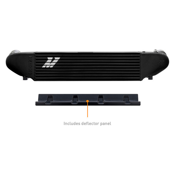 Take your 2024+ Ford Mustang EcoBoost to the next level with the Mishimoto Performance Intercooler. Engineered for maximum cooling efficiency and reliability, this direct-fit intercooler is built to handle the demands of spirited driving while remaining safe to run on the stock tune. Featuring a robust bar-and-plate core with cast aluminum end tanks, it delivers improved airflow, reduced intake temperatures, and increased power for your EcoBoost Mustang.--The Mishimoto intercooler boasts the largest possible core size that can fit in the stock location, providing a 60% increase in core volume compared to the factory unit. Oversized 63mm inlet and outlet diameters outflow the stock system for better charge air movement, while a diverter plate in the hot-side end tank promotes even airflow distribution across the core. Gains of up to 12 horsepower and 11 ft-lbs of torque can be achieved without any tuning required.--Installation is simple and fully compatible with stock ducting and both OEM and Mishimoto intercooler pipes, with no cutting required. Foam sealing strips ensure maximum airflow through the core, and a custom vacuum-formed bottom air deflector improves underbody flow while reducing NVH thanks to its ribbed structure. To support the increased weight of the larger core, the intercooler mounts directly to the subframe using four EPDM rubber sandwich mounts, isolating vibration and increasing overall rigidity.--Every intercooler comes equipped with a pre-drilled and tapped NPT sensor port for data logging or the addition of auxiliary sensors. All necessary hardware is included for a straightforward installation.--The Mishimoto Performance Intercooler for the 2024+ Ford Mustang EcoBoost is built for enthusiasts who want lower intake temps, increased power, and a long-lasting solution to keep their Mustang running strong. Like all Mishimoto products, this intercooler is backed by the Mishimoto Lifetime Warranty.