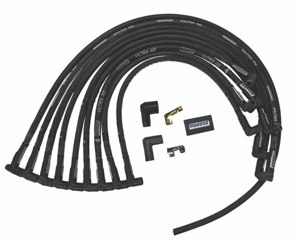 Moroso Chevrolet Small Block (w/Jesel) Ignition Wire Set - Ultra 40 - Sleeved - 90 Degree - Black