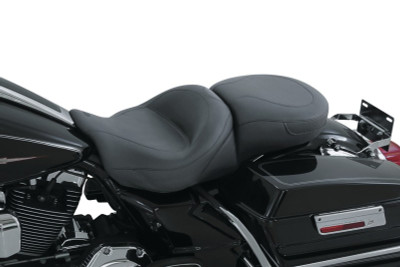 The front seat sets the rider back 1.75" compared to the stock seat plus it angles the body for long-distance comfort. The rear seat provides support across its full width and keeps the passenger firmly in the comfort zone. Styled after state-of-the-art automotive interior designs, the seat features exquisite stitching detail in Gunmetal Grey thread. Available driver backrest sold separately. The receiver for the optional, removable and fully adjustable driver backrest is built directly into the seat's baseplate.