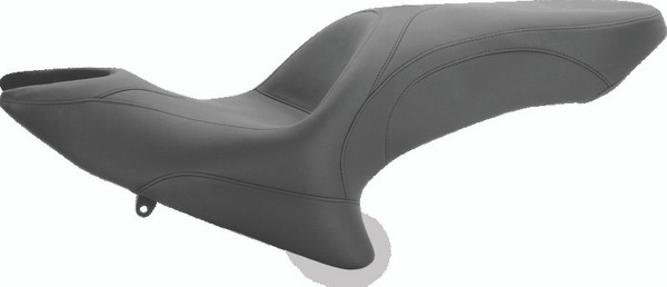 A clean and comfortable one-piece Wide Touring platform with a deeply pocketed 15.5" wide driver seats that sits you at the ideal cruising angle approximately 1/4" lower than stock. The 12" wide passenger seat utilizes unique internal steel support wings for support across its entire width.