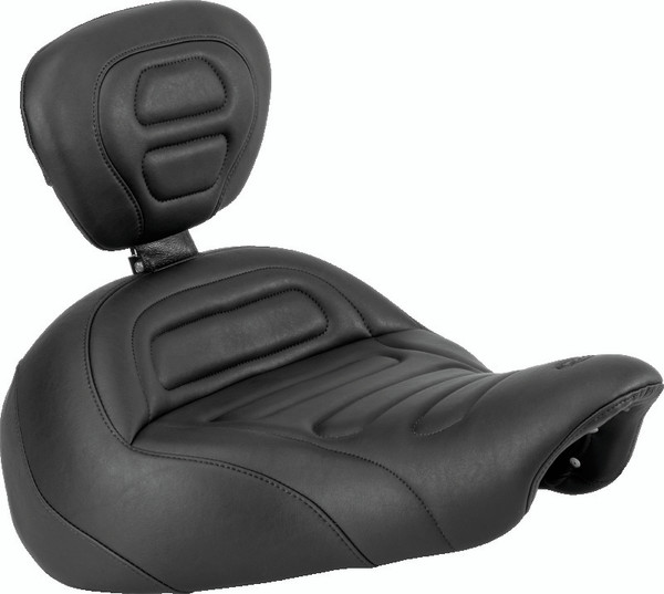 Featuring a unique trapezoid stitch pattern on high-quality expanded vinyl, the solo allows the rider to sit comfortably back into a 15.5" wide bucket that provides superior lumbar support. The matching passenger seat offers a generous 11.5" width that is properly contoured for comfort. All seats and the matching sissy bar pad (76289) have been specifically engineered to provide truly uncompromising comfort for both drivers and passengers. Available with or without a built-in receiver that accepts a fully adjustable and easily removable driver backrest for maximum comfort.