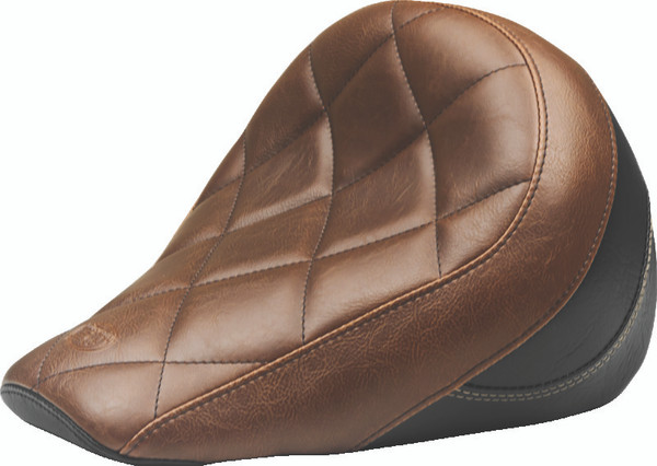 The Standard Touring solo keeps the old-school bobber styling intact, while also delivering a significant upgrade in rider comfort and positioning. The 13" wide solo is 1" wider than stock with a contoured bucket that offers excellent lower back support, keeps the rider at a similar reach to the controls and eliminates sliding back in the saddle so you can ride hard and rack up the miles. Choose smooth and textured black vinyl, or opt for the classic contrasting distressed brown with textured black vinyl. Which ever you choose, both are guaranteed to enhance style with large diamond-stitched center panels and reinforced triple stitching on the sides.