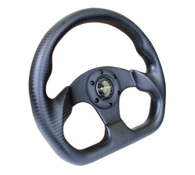 NRG Carbon Fiber Steering Wheel (320mm) Flat Bottom & Leather Trim w/Black Stitching - ST-009CFBS