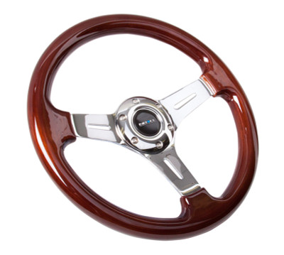 NRG Classic Wood Grain Wheel - 350mm 3 Chrome Silver Spokes Oak Color Wood