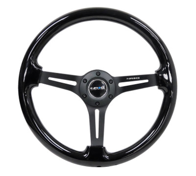 NRG Reinforced Steering Wheel (350mm / 3in. Deep) Black w/Black Chrome Solid 3-Spoke Center