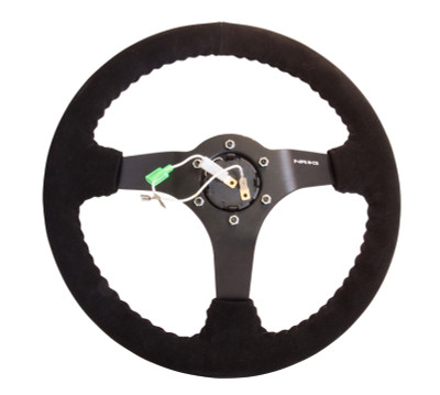 NRG Reinforced Steering Wheel (350mm / 3in. Deep) Blk Suede/Red BBall Stitch w/5mm Matte Blk Spokes