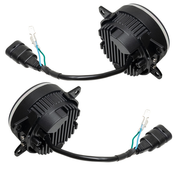 These direct-fit fog lights feature factory mounting and plug-and-play wiring connections for easy, trouble-free installation. These amazing LED units push out approximately 1750 lumens which will vividly light up the road while only drawing 19W of power per light. The new rugged solid-state LED design can operate in the worst possible conditions. Each light utilizes a durable PMMA lens and Polycarbonate lamp housing to withstand impact. The solid-state LED emitters withstand the worst shock and vibration while the epoxy-sealed electronics prevent moisture and corrosion. The aggressive blacked-out look gives your vehicle a modernized appearance and improves night-time visibility at the same time.