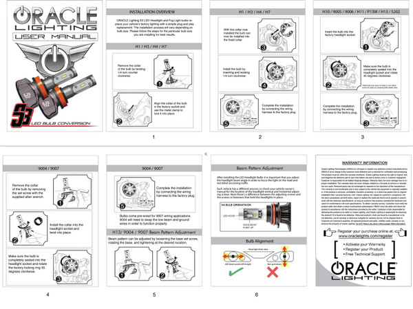 ORACLE Lighting S3 LED Conversion Bulbs Instantly provide 3200 Lumens of Crystal Clear 6000K light output. The electronic components of the S3 Headlight bulbs are housed in a sealed waterproof heat-sink design, eliminating the need for external drivers and cooling fans. The CSP (Chip Scale Package) LED Chip Design features a small package size but high intensity volume per unit with less heat value resulting in industry-leading Luminous Efficacy (science talk for Best Bang for your Buck). This new low-profile design reduces common bulb fitment issues for an easy Plug & Play DIY installation.