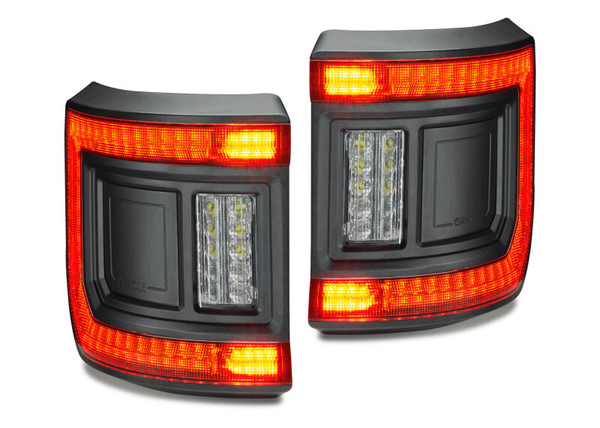Designed to fit flush with the truck bed of the Jeep Gladiator, the new JT Flush Tail Lights from ORACLE Lighting offer new LED features and improved styling. This innovative design is a sleek tail light for Jeep Gladiators that wraps tightly around the truck. Protruding out significantly less than the factory tail lights, this low-profile design avoids damage while trail riding. Because of the nearly flush wrap-around design, the lighting can be visible from any rear angle, making it a unique solution for the Jeep. These Jeep Gladiator tail lights provide improved aesthetics and functional LED lighting features including high-powered reverse lights and signature perimeter lighting. In addition to standard features, the plug-and-play design features an enhanced reverse function and caters to the Jeep's optional cross-traffic sensor. The reverse light features 12 high-powered LEDs for optimal rear illumination. The cross-traffic sensor can be swapped directly over from the factory assembly and easily installs into the ORACLE Lighting tail lights for Jeep Gladiator. These flush-mount tail lights are compatible with base and LED packages. Gain sleek styling that compliments the original body lines and tons of innovative features. With the superior quality and durability that ORACLE Lighting is known for, these tail lights are the perfect upgrade for your Jeep Gladiator!