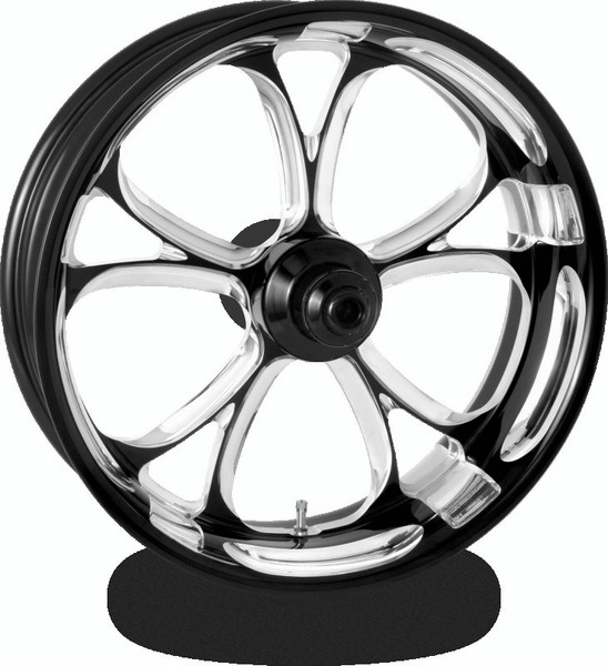 The Luxe features a timeless design with 5 carved spokes that emerge from the hub, split, and melt back into the smooth rim lip. The dramatic, machined grooves on the outer rim lip result in a sublime motorcycle wheel.