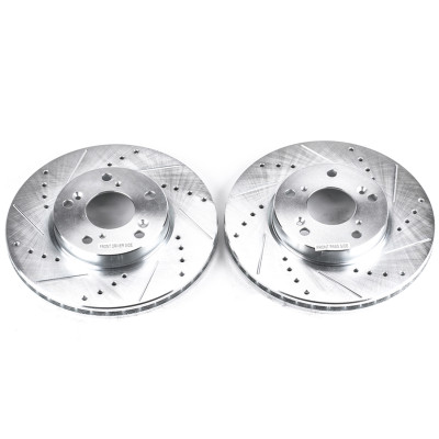 Power Stop drilled and slotted rotors provide a bolt-on upgrade for improved brake cooling and performance. Precision cross-drilled for maximum cooling and maximum performance during extreme conditions; rounded slots sweep away gasses, dust, and moisture to keep a clean friction contact patch on the rotor surface. Silver zinc dichromate plating resists rust and corrosion. With a direct OE fit, there are no special modifications needed.