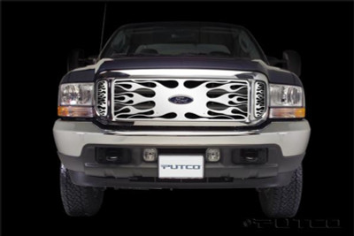 Putco 99-04 Ford SuperDuty w/ Logo CutOut (Does not Include Side Vents) Punch SS Grilles - 84106