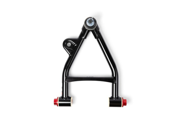 Product Overview QA1's Mustang race control arms are the perfect combination of performance and style, offering lightweight, durable construction and a clean, sleek design that will enhance the look of your Mustang. On-The-Car Adjustability QA1's unique eccentric adjustment sleeve allows for precise tuning of camber and up-to a 1/2 of track width adjustment without removing from the car, a feature not found in other control arms. Forged Ball Joint Housings A unique feature of the QA1 control arm is the forged ball joint housing. This provides exceptional reliability, strength, and durability. The low-friction ball joint ensures smooth operation, and the rebuildable, lightweight, and greaseable design makes maintenance a breeze. Ultra-Low-Friction Composite Bushings QA1's ultra-low-friction composite bushings are stiffer and provide bind-free movement, providing enhanced stability and control. They also allow for freer movement, resulting in a more responsive ride. Additionally, these bushings are much more durable than rubber bushings, making them highly resistant to wear and tear. Finally, composite bushings are greasable.for long life. Lightweight Design QA1 street control arms were designed to be the strongest, best looking control arms on the market. And weighing in at less than 8lbs per arm, this makes them among the lightest of street worthy control arms available. Easy, Bolt-In Installation Our commitment to thoughtful product design is evident in every product we produce, to deliver the highest level of performance at the track, while ensuring trouble-free compatibility. Made in the USA QA1 control arms are proudly made in Lakeville, Minnesota. Fitment Notes Control arms allow +/- 1/8 adjustment from factory length Compatible with factory and QA1 K-members Coilover struts required, not compatible with factory coil springs Fox Body control arms include adapter for SN95 spindles