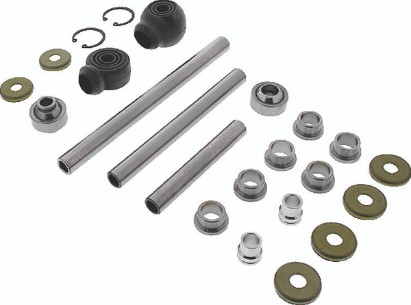 Keep your upper and lower A-arm and knuckle in fighting shape with this quality repair kit. Kit contains all of the components required to rebuild the upper and lower A-arm and knuckle. Needle bearing shafts are made with 52100 bearing steel that has been hardened and precision ground. Self-lubricating acetal nylon bushings for better wear and performance. All metal bushings are case hardened and plated to prevent wear and corrosion.
