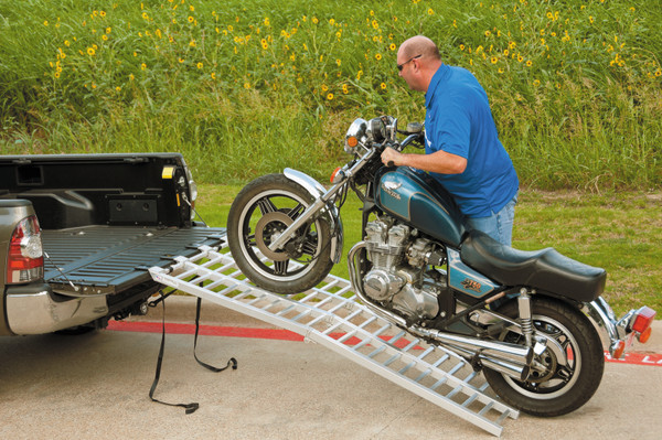 Load and unload with confidence. The wide-width and rungs spaced 2-3/4 in. apart make this an easy walk. Arched top half of ramp helps prevent drag. Made in USA with robotically welded 6063-T5 aluminum billet. Lightweight with vinyl-coated tips.