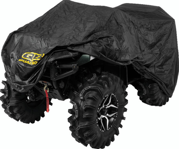 Protect your quad from the elements and the unexpected perils of storage with this cover. Heavy-duty, water-repellent nylon. Durable construction is UV-resistant. Double-stitched interlocking seams for added strength. Elastic hem cord ensures a tight fit in wind and rain. 2XL size fits units with attached drop baskets, mesh racks, plows, spreaders, etc. Handy storage bag is sewn into the cover.