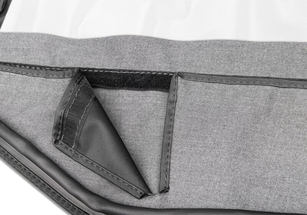 Replace your aging, worn out factory soft-top and gain some additional storage space inside the driving compartment. All the features of the original factory top with exclusive Rampage additions which includes two zippered storage pockets. Produced in original factory specifications and colors. The Rampage replacement top easily installs over factory framework, attaches to factory mounting points and original equipment belt rail attachment system. Also, with door skins that slip over the upper doorframes. Soft upper doors are included. Fits all factory applications. Available with either tinted or clear windows. For half door applications only.