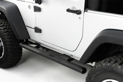 Complete the look with a set of Rugged Ridge tubular tough duty side steps. Available in 3-Inch round, 4-Inch round, and 4.25-Inch oval diameter sizes. The large 4.25-Inch oval and 4-Inch round tubes provide a much cleaner look and are not dwarfed by oversized tires and oversized body style features of the tubing polished to a mirror finish. The polishing process for Rugged Ridge step is longer and deeper pulling out the deepest shine from the steel. A true deep polish! Rugged Ridge painted steel Tube Steps feature special E-coated, .07 inch wall steel that is thick source powder coated for a tough chip resistant finish. The special E-coat undercoating provides double rust protection as it bonds to the metal creating a protective layer found nowhere else. All Rugged Ridge Tube steps feature a truly custom fit with installation brackets constructed of durable 3/17 inch powder coated steel for long life and years of flex-free use. Each Tube Step Features special UV treated no-slip step pads with 5 mounting pins. These step pads are preinstalled on top of the tube, no exposed metal to rust. Side steps carry a 300lb max weight limit.