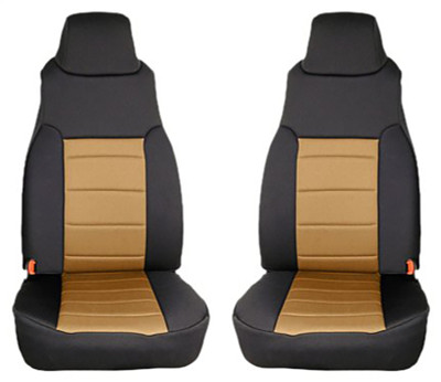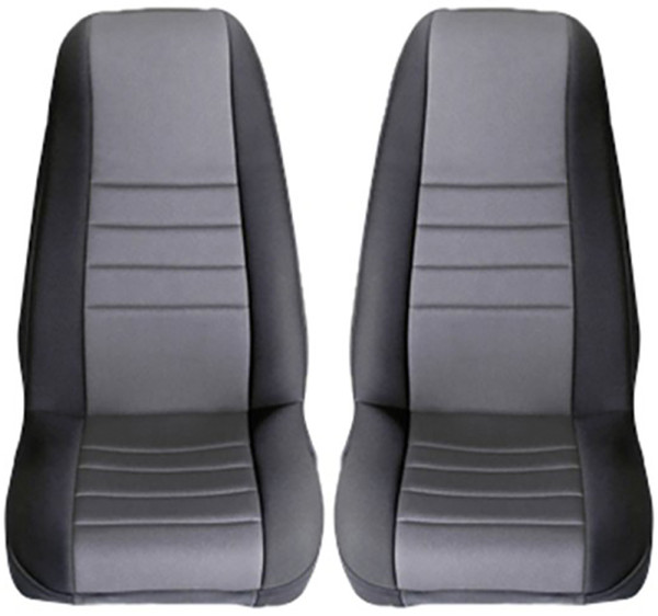 Custom Fit Neoprene Seat Covers. These covers are constructed of durable neoprene creating the best looking custom seat cover available. Rugged Ridge does not use that cheap stretch nylon on their seat covers! Neoprene (wet suit material) is a great fabric to protect your seats from dirt, water and whatever mother nature can throw at you. No more burned legs from hot vinyl seats! Each cover is custom tailored for your Jeep's original equipment seat style making your seats look like they have been recently reupholstered. Installation is easy with special designed elastic cords, nylon straps and hooks that attach to your seat and to the seat cover mounting points. The center portion (color) goes all the way to the top of the seat.
