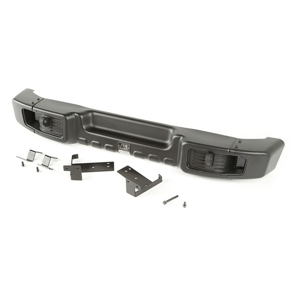 The Stamped Rear Bumper from Rugged Ridge features a tough satin black powder-coated finish with a sturdy 11 gauge stamped steel construction. The stamping process used allows for the most advanced styling on the market, creating a bumper lighter than most aftermarket steel bumpers. Accepts 7/8-inch D-Ring Shackles. Patent No. D803,734